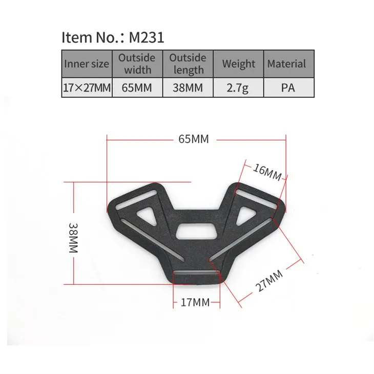 Za pregradu trake za biciklističku kacigu imamo dva različita dizajna - D039 i D053. Obje dostupne veličine u 3/4", koriste se za vođenje remena iz jednog smjera u dva mjesta na kacigi. Ovi razdjelnici kaiša za bicikliste izrađeni su od POM plastike. Prilagodba boja i logotipa je prihvatljiva.